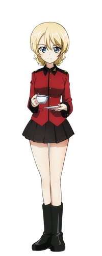 Darjeeling es una estudiante de tercer año de la Escuela Secundaria St. Gloriana . Ella es el comandante general del equipo Sensha-do de su escuela y ella opera un Churchill Britanico.Darjeeling es una chica elegante de estatura media pelo rubio y un par de ojos de color azul claro.
