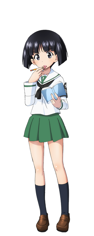 tambien llamada Sodoko,es una estudiante de tercer año de Ooarai Girls High School, y el líder del Comité de Morales Públicos. Ella es el comandante, artillero / cargador de 47 mm y operador de radio del Equipo Mallard. Midoriko es una chica con el pelo negro corto y un par de ojos negros.